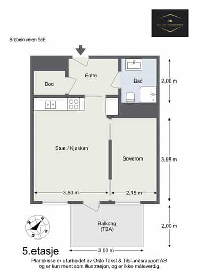 BRA-i: 38 kvm. Entré, baderom, bod, soverom og stue/kjøkken