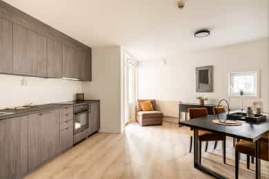 Moderne og arealeffektiv 1-roms andelsleilighet i indre gårdsrom på Bislett. Leiligheten er nyoppusset i 2025 og fremstår moderne og delikat, med lyse fargevalg på vegger og nytt laminatgulv. Det er også nytt, lekkert bad/wc og nye overflater, samt nytt røropplegg og oppgradert elektrisk anlegg. Moderne felles allrom med lekkert kjøkken og utgang til felles balkong på hele 10 m². I tillegg er det tilgang til felles takterrasse. Felleskostnadene inkluderer strøm (à konto), fyring (vannbåren), varmtvann og internett. - Perfekt førstegangskjøp - Nyoppusset i 2025 - Araleffektiv planløsning - Store vindusflater - Heis i bygget - Mulighet for garasjeleie - Ingen forkjøpsrett - Lave omkostninger - Mulighet for rask overtagelse - Svært sentralt og attraktivt område