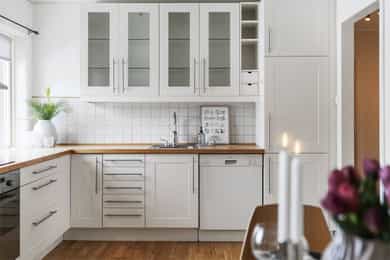 Alle hvitevarer på kjøkkenet medfølger, samt vaskemaskin. Resten av møblementet i leiligheten er styling som IKKE medfølger. Vedlagt salgsoppgaven følger NEF sin standardliste "Oversikt over løsøre og tilbehør". Med mindre annet fremkommer av salgsoppgaven gjelder denne listen. Dersom det er noe i overnevnte liste som ikke finnes på eiendommen, vil det heller ikke medfølge. Produkter og installasjoner som medfølger overdras uten noen form for garantier, utover eventuell gjenværende leverandørgaranti. Hull og merker etter feste av innredning og utstyr som ikke følger med, aksepteres av kjøper.