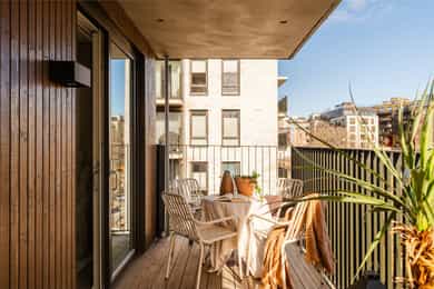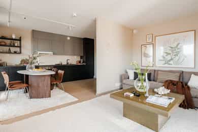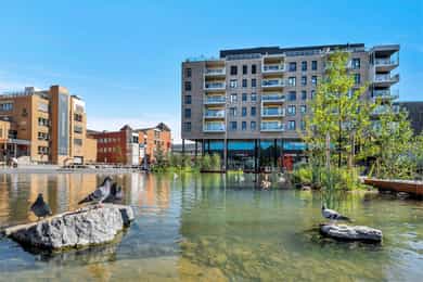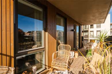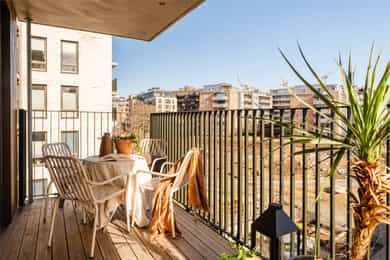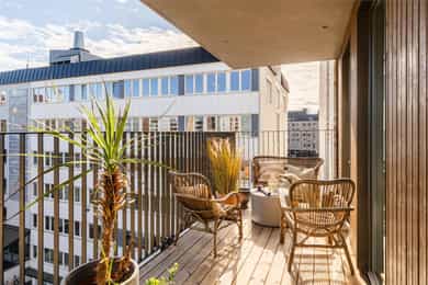 VELKOMMEN TIL GLADENGVEIEN 5F! Rålekker 3-roms hjørneleilighet med to herlige balkonger. Leiligheten ligger høyt og fritt i 6. etasje med gode lysforhold og herlig utsikt mot den nye parken og vekk fra trafikkert vei. Bygget stod ferdig i 2022, noe som gir deg moderne standard, tidsriktige materialvalg og minimale vedlikeholdsbehov i mange år fremover. Ensjø er et populært område i vekst, med kort vei til alt man trenger! FASILITETER - Hjørnebeliggenhet med flotte lysforhold - Sosial planløsning med delvis åpen stue/kjøkken - To gode soverom - To herlige balkonger på 18 m² - Á-konto fjernvarme - Balansert ventilasjonsanlegg - Vannbåren gulvvarme - Nybyggaranti - 6. etasje med heis - Kiwi i første etasje med adgang via kjeller/garasje - Mulighet for kjøp av garasjeplass*