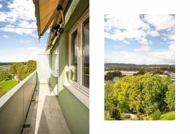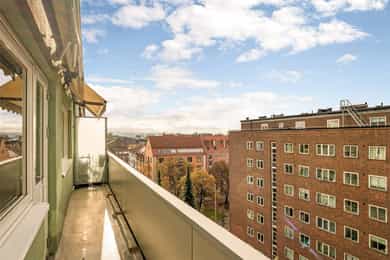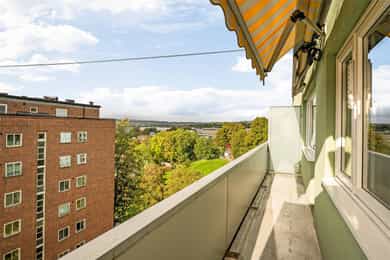 Attraktiv 4-roms oppussingsobjekt i 7. etg. Solrik balkong og utsikt, heis og peis. Fyring & V.V inkl. Parkering
