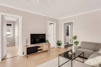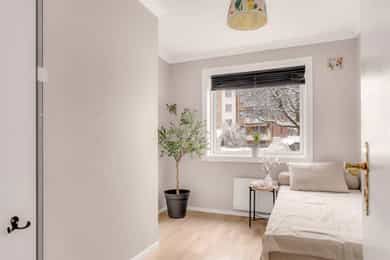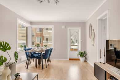 Velkommen til Formerveien 4! Presentert av Bjørnar Hagerup Nilssen ved Nordvik. En lys og koselig 3-roms andelsleilighet beliggende i 1.etasje. Leiligheten har en praktisk planløsning bestående av stue med store vindusflater, separat kjøkken, to soverom og bad. Fra stuen er det utgang til en koselig balkong på ca. 9 kvm. Leiligheten ligger i et populært og barnevennlig området med kort vei til kollektivtilbud, butikker, Østmarka og koselige grøntområder. Kvaliteter ved boligen det er verdt å merke seg: -Innglasset balkong på 9 kvm med plass til utemøblement -Hjørneleilighet med store vindusflater -Hele boligen ble malt i 2025 -Nærhet til Østmarka og Østensjøvannet -To kjellerboder og en loftsbod -Ingen dokumentavgift -Separat kjøkken -Vinduer og balkongdør 2015 -Kort vei til T-bane