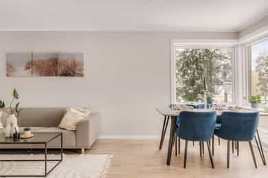 Lys 3-roms hjørneleilighet | Innglasset balkong på 9 kvm | Attraktiv og rolig beliggenhet med nærhet til marka og T-bane