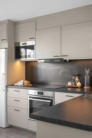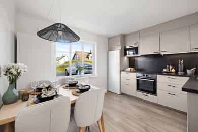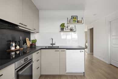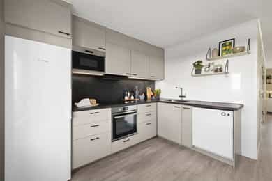 Følger med: Kjøleskap, mikrobølgeovn, stekeovn og oppvaskmaskin.