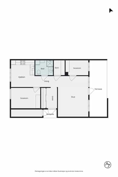 BRA-i: 71 kvm. Vindfang, stue, kjøkken, 2 soverom, bad/wc/vaskerom, bod