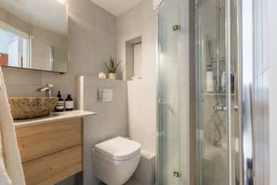 1. Vet du om det har det blitt utført arbeid på bad/våtrom, enten i din eller tidligere eiertid? Ja, faglært. Gjort om toalettrom til bad (totalrenovering). Arbeidet ble utført av Johny Smeby Aut. Rørleggermester, MJ Elektro AS og Entreprenør Tore Sandell AS. Februar-mars 2023. 1.1 Vet du om tettesjikt, membran eller sluk ble fornyet eller oppgradert? Ja, faglært. Gjort om toalettrom til bad (totalrenovering). Arbeidet ble utført av Johny Smeby Aut. Rørleggermester, MJ Elektro AS og Entreprenør Tore Sandell AS. Februar-mars 2023. 1.2 Vet du om det finnes dokumentasjon på hvordan bad eller vaskerom er bygget opp? Ja, faglært. Gjort om toalettrom til bad (totalrenovering). Arbeidet ble utført av Johny Smeby Aut. Rørleggermester, MJ Elektro AS og Entreprenør Tore Sandell AS. Februar-mars 2023. 4. Vet du om det er gjort arbeid på det elektriske anlegget, enten i din eller tidligere eiertid? Ja. Foreligger det en samsvarserklæring? Ja, MJ elektro AS, utbedringer av elektrisk anlegg og omlegging av gummiledninger. Februar-mars 2023. 4.1 Vet du om det elektriske anlegget har blitt kontrollert? Ja, januar 2026 (EL-tilsyn). 5. Vet du om det er gjort arbeid på vann og avløp, enten i din eller tidligere eiertid? Ja, faglært. Johny Smeby Aut. Rørleggermester. Fornyet bad, herunder lagt sluk. Februar-mars 2023. 23. Vet du om det er utført tidligere arealoppmålinger av boligen, eller om boligens areal er oppgitt i dokumenter som salgsoppgave, takstrapport, tilstandsrapport, byggesøknad eller lignende? Ja, tidligere salgsoppgave fra november/desember 2022.