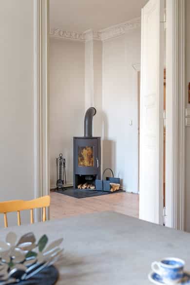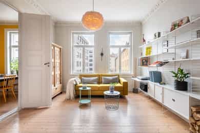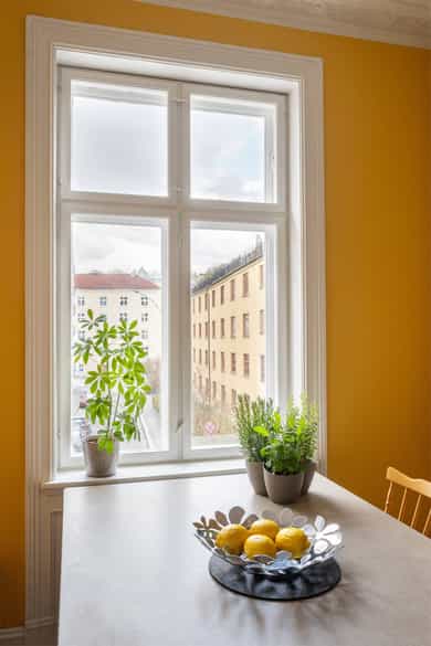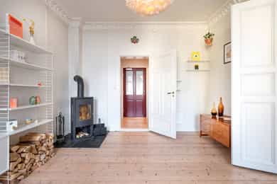 Klassisk og fin 3-roms | Solrik sydvendt balkong | Peis | Generøs takhøyde 3m | Varmtvann inkl | Skjermet og rolig gate