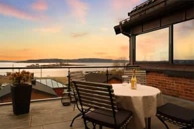 Eksklusiv, unik og stor leilighet med spektakulær utsikt - "Villafølelse" med hagedel og terrasse - Garasje - Hybeldel