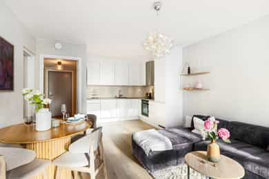 Velkommen til Nycoveien 14! Dette er en stilren 2-roms selveierleilighet i 2. etasje med attraktiv og urban beliggenhet på Storo/Nydalen. Her bor du med umiddelbar nærhet til et bredt utvalg av servicetilbud som treningssentre, dagligvarebutikker, restauranter og offentlig kommunikasjon. - Innbydende 2-roms med god planløsning - Nordvestvendt balkong på 8 m², vendt mot gårdsrom - Sigdal-kjøkken med hvitevarer fra Siemens - TG1 på alle punkter - Bygg fra 2021 med nybyggkvaliteter - Balansert ventilasjon - A-konto varmtvann og bredbånd inkl. - Tilhørende bod på 4,9 m² - Felles sykkelparkering, gjesteleiligheter og hjemmekontorlokale - 5 felles takterrasser for beboerne - Heis - Rett ved populære Lillo Gård, Storo storsenter og offentlig kommunikasjon