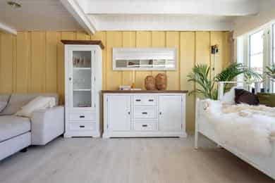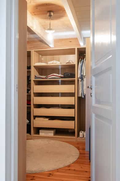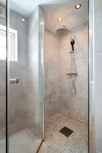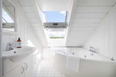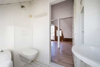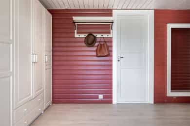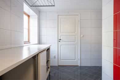 Innvendige overfalter (vegger, tak og gulv): KJELLER: Vegger: Malt trepanel og fliser på vaskerom Tak: Malt trepanel Gulv: Fliser og laminat 1.ETG: Vegger: Slettmalt, malt trepanel og fliser på bad Tak: Malt trepanel og synlige bjelker Gulv: Laminat og fliser på bad. Under alle gulv i denne etasjen er det originale furugulv. 2.ETG: Vegger: Malt/beiset trepanel og slettmalt Tak: Malt trepanel Gulv: Laminat og fliser på bad. Under alle gulv i denne etasjen er det originale furugulv. Vaskerom i kjeller: Sluk i kjeller er ikke lokalisert på befaringsdagen, det er derfor ikke utført full våtromskontroll av rommet. For et komplett våtrom må det være vanntette sjikt på vegger og gulv, sluk må ha tilstrekkelig fall fra vegger og vanninstallsjoner.
