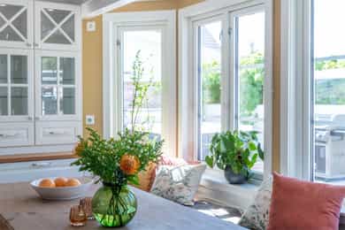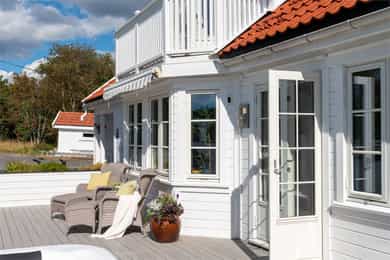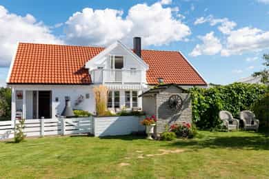 Romslig arkitekttegnet familiebolig med båtplass, solrik hage og boareal over 3 plan. Kort vei til natur og skjærgård.