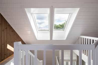 -Takhøyden i 2.etasje er varierende da det er skrående himling, fra knevegg til møne er det målt 1,03 - 3,01 meter