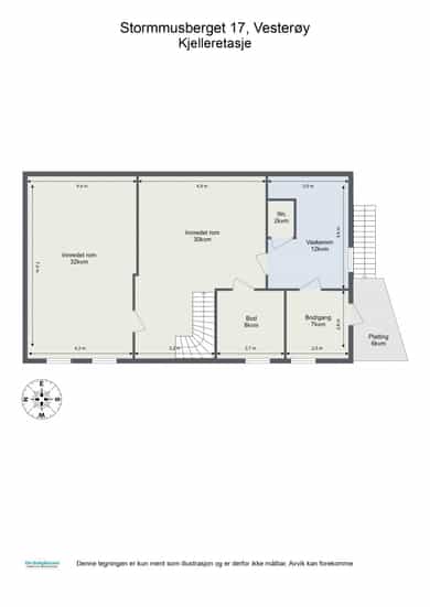BRA-i: 96 kvm. -Kjellerstue, boder, innredet rom, vaskerom og wc-rom