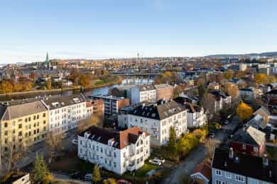 Øya er en attraktiv og sentrumsnær bydel i Trondheim, omkranset av Nidelven. Området har en variert bebyggelse med både leiligheter, eldre villaer og eneboliger, og knyttes til Midtbyen via Elgeseter bru samt gangbruene ved Stadion og Nidareid. Her finner man også St. Olavs hospital og flere sentrale bygninger tilknyttet NTNU. Selv med sin umiddelbare nærhet til Midtbyen oppleves Øya som en skjermet og tilbaketrukket bydel, noe som gir en sjelden kombinasjon av ro og urban puls. Fra Studentersamfundet finner man også meget gode bussforbindelser videre til både sentrum, Dragvoll og BI. Fra boligen er det gangavstand til NTNU Gløshaugen, Kalvskinnet, Handelshøyskolen og Teknobyen, samt kort vei til Lerkendal stadion for den fotballinteresserte. For den aktive finnes et bredt utvalg av treningsmuligheter. Området byr på flotte turer som Midtbyrunden, rundt Nidelva eller langs Elvepromenaden. Følger man Nidareid bro over til Ila er det kort avstand til Bymarka, med bademuligheter rundt Theisendammen og Baklidammen på sommerhalvåret, og fantastiske skiløyper på vinterstid. I tillegg ligger både Sit Øya, 3T-Teknostallen innen gangavstand. I nærområdet finner du et godt utvalg av både dagligvarebutikker og hyggelige kafeer. Joker (søndagsåpen), Coop Prix, Coop Extra og Bunnpris Gourmet gir et bredt dagligvaretilbud, mens Tantes Hage, Dromedar kaffebar og Snurr Sommergården tilbyr koselige møteplasser. For ytterligere shoppingmuligheter ligger Trondheim Torg, Nordre gate og Byhaven kun 10–15 minutters gange unna.