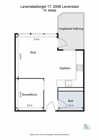 BRA-i: 34 kvm. Entré, bad, sovealkove, og stue/kjøkken