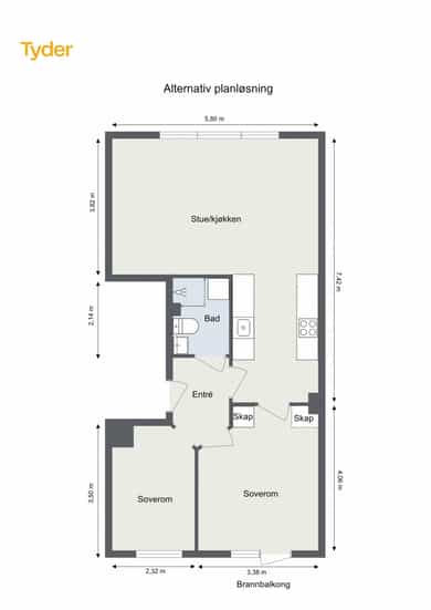 Stor 2-roms oppussingsobjekt med solrik brannbalkong. Mulig 3-roms. Ingen dok.avg. Fyring/V.vann ink. Mulig garasjeleie
