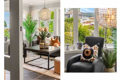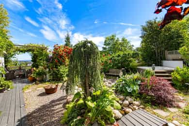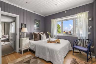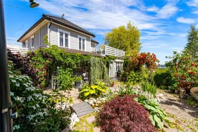 Tiltalende enebolig m/utleiedeler på attraktive Teie | rolig og tilbaketrukket på en høyde m/sjøutsikt og sen kveldssol