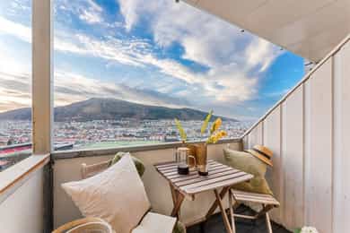 Utsiktsleilighet med koselig privat balkong og solforhold av de sjeldne! Mulighet for parkering. Kort vei til buss.