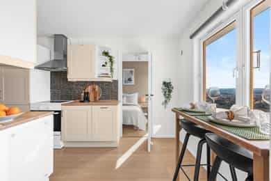 Attraktiv 2-roms toppleilighet m/fantastisk utsikt - Vestvendt balkong - "Alt" inkl. i fk. - Heis - Populær beliggenhet