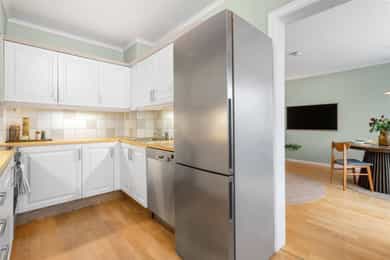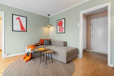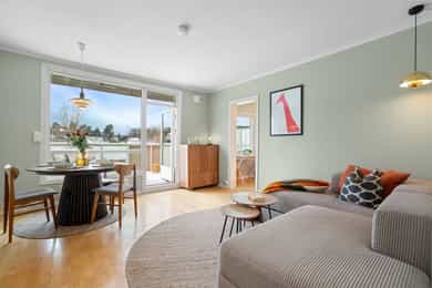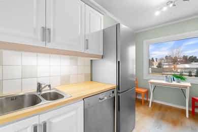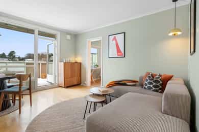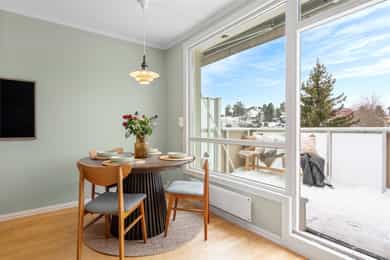 Pen, innbydende 2-roms toppleilighet med solrik, sydvestvendt balkong og flott utsyn. Boligen oppleves velholdt med god planløsning og store vindusflater som slipper inn rikelig med lys. Her bor man skjermet til på toppen uten direkte innsyn. Legg merke til: - Flott utsikt over nærområdet - Separat kjøkken, mulighet for 3-roms - Pent bad fra 2016 med opplegg for vaskemaskin - 7 kvm sydvestvendt balkong med sol til den går ned om sommeren - Brattlikollen T-bane rett ved -bane til sentrum på ca. 16 min - Parkeringsplass-leie etter venteliste - Lave kjøpsomkostninger - 2 boder Nærhet til marka og fritidsområder, samtidig som det oppleves urbant og sentrumsnært. Ekebergparken like ved og det er kort vei til bl.a. Østensjøvann og Nøklevann. Kort avstand til dagligvare og offentlig transport.