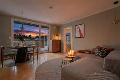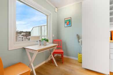 Pen og lys 2-roms toppleilighet m/solrik sydvestvendt balkong. Flott utsikt over nærområdet. P-leie. Skjermet og sentral