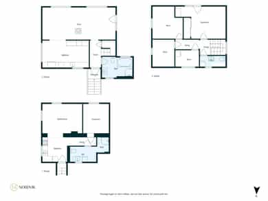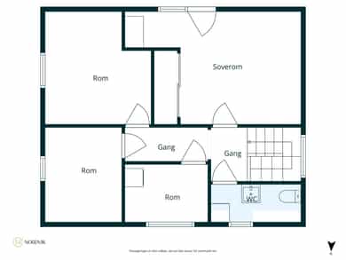 Underetasje: Entré, kjøkken, stue, bad/vaskerom, soverom og bod 1. etasje: Entré, bad, stue og kjøkken 2. etasje: Gang, 4 soverom og toalettrom (ikke målbart)