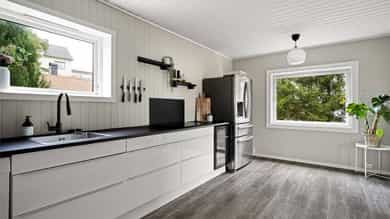 Følgende hvitevare følger ikke med handelen: Kjøleskap, mikro og vaskemaskin i øvre etasje.
