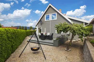 Smakfullt innredet enebolig med 4 soverom og 2 bad. Solrik, usjenert uteplass og barnevennlige omgivelser. Garasje.