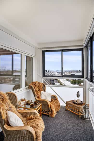 Horten/Åsen: Lys og tiltalende 3-roms leilighet med 2 soverom og stor innglasset balkong! Oppvarming og varmtvann ink!