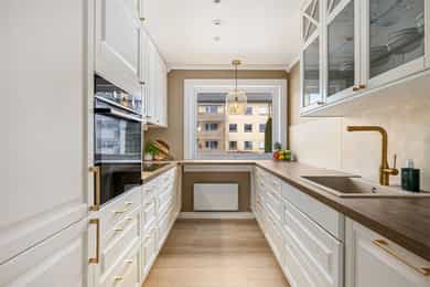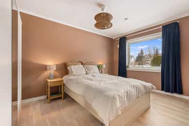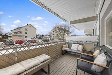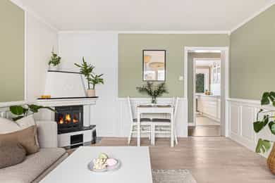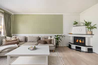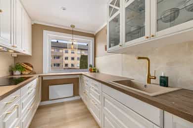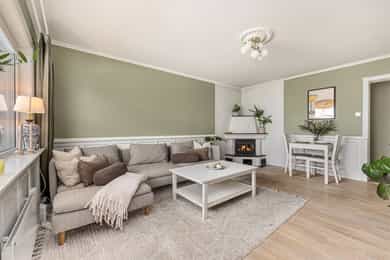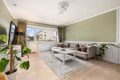 Flott og innbydende 3-romsleilighet med nyere kjøkken (2021). Peis. Flislagt bad. Vestvendt og solrik.