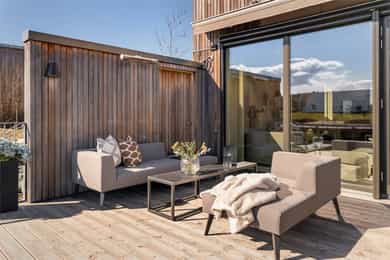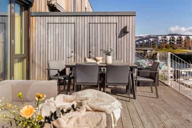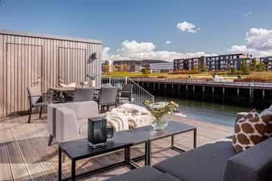 Velkommen til Havseilervegen 18 – et spektakulært enderekkehus med sjelden beliggenhet helt i vannkanten av vakre Grillstadfjæra. Her får du en bolig utenom det vanlige – med eksklusiv standard, gjennomtenkte løsninger og utsikt til kanalen/sjøen fra to sider. Dette er et hjem for deg som verdsetter kvalitet, komfort og en maritim livsstil. Med en romslig planløsning over to etasjer og hele 155 kvm bruksareal, tilbyr boligen en perfekt kombinasjon av funksjonalitet og eleganse. De store vindusflatene sørger for rikelig med naturlig lys og gir en fantastisk romfølelse – samtidig som de åpner opp mot den rolige kanalen og det vakre fjæralandskapet utenfor. Høydepunkter ved boligen: - Unik beliggenhet i enden av rekken, med fri utsikt og minimalt med innsyn - Skjermet terrasse vendt mot kanalen – et perfekt sted for rolige morgener og sosiale kvelder - Egen båtplass like utenfor døren – for enkel tilgang til sjøen og skjærgården - Tre moderne bad – stilrene og påkostede, med kvalitetsinnredning - To private parkeringsplasser i lukket kjelleranlegg - Vannbåren gulvvarme fjernvarme - Smarthusteknologi for enkel styring av lys, varme og sikkerhet - Gjennomgående høy standard – materialvalg og detaljer som bærer preg av kvalitet og omtanke - Åpen og luftig planløsning, ideell for både hverdag og selskapeligheter Boligen ligger i et rolig og attraktivt nabolag, med kort gangavstand til både badestrand, lekeplasser, restauranter og flotte turområder. Samtidig er det bare en kort kjøretur til Trondheim sentrum, noe som gir en perfekt kombinasjon av naturnær livsstil og byens fasiliteter. Dette er en sjelden mulighet til å sikre seg et moderne hjem med umiddelbar nærhet til sjøen – i et av Trondheims mest etterspurte boligområder. P-ROM 1. etasje: Entrè/gang, kjøkken, bad, stue. 2. etasje: 4 soverom, gang/trapperom og 2 bad. S-ROM 1. etasje: Bod/teknisk. 2. etasje: Bod.