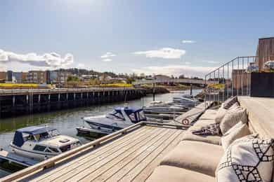 Fantastisk kanalhus med endebeliggenhet og svært etterspurt beliggenhet. 2 p-plasser og båtplass i marina. Fjernvarme.