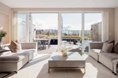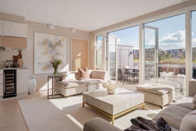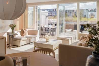Velkommen til Havseilervegen 18 – et spektakulært enderekkehus med sjelden beliggenhet helt i vannkanten av vakre Grillstadfjæra! Boligen ligger i et rolig og attraktivt nabolag, med kort gangavstand til både badestrand, lekeplasser, restauranter og flotte turområder. Samtidig er det bare en kort kjøretur til Trondheim sentrum, noe som gir en perfekt kombinasjon av naturnær livsstil og byens fasiliteter. Kvaliteter: - Unik beliggenhet i enden av rekken, med fri utsikt fra to sider - Sjelden mulighet! - Terrasse vendt mot kanalen - Egen båtplass like utenfor døren - Tre moderne bad – stilrene og påkostede, med kvalitetsinnredning - To p-plasser i garasjeanlegg - Eksklusiv standard med gjennomgående kvalitetsmaterialer - Smarthusteknologi Vel møtt til en hyggelig visningsopplevelse!