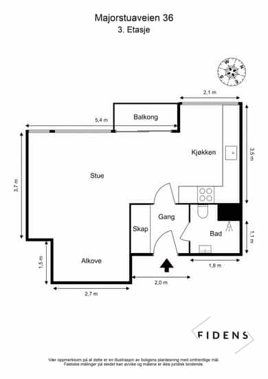 Lys, arealeffektiv 1- roms - Heisadkomst - Solrik balkong -Lave felleskostnader - Perfekt førstegangskjøp/utleieobjekt