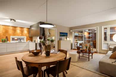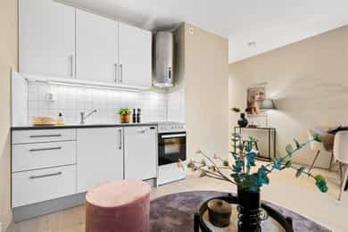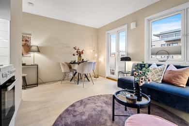 Velkommen til Nydalen Allé 11. Dette er en attraktiv og stilren 3-roms endeleilighet med utleiedel, alternativt en fullverdig 4-roms, beliggende i byggets 7. etasje. Boligen gir stor fleksibilitet i bruken og kan enten disponeres som en romslig 4-roms, eller som en 3-roms med separat utleiedel som er leid ut skattefritt for 12.000 i dag. Leiligheten har en attraktiv beliggenhet i Nydalen. Kvaliteter: - 3-roms + utleiedel / 4-Roms - Familievennlig og åpen planløsning - Sydvendt balkong på ca. 12 kvm - Smart og komplett hybeldel på ca. 22 kvm – leid ut for 12 000,- i dag - Bad oppusset i 2022 (hoveddel og hybel) - Påkostet hvitlakkert 1-stavsparkett i 2019, hybel 2022 - Moderne Epoq-kjøkken fra 2018 (hoveddel) - Varmtvann, fyring, TV og bredbånd inkl. - Heis - Mulighet for parkeringsleie*
