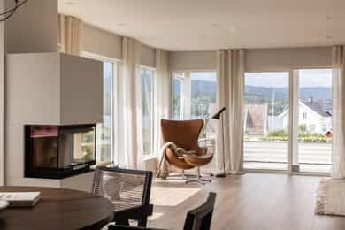 • Boligen går over 2 plan og byr på 4 gode soverom, et romslig og lekkert kjøkken, samt flere stuer med utsikt mot fjorden.