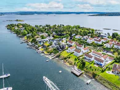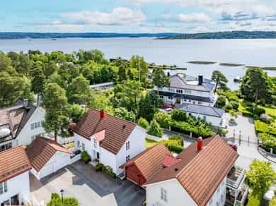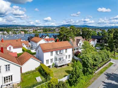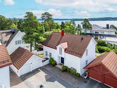 Sjønær, frittliggende og innholdsrik enebolig. Barnevennlig og trafikksikkert. Solrikt og fredelig med sjøen på begge sider av Strømstangen. Utsikt til sjø på to sider. 15 frittliggende eneboligeiendommer med privat brygge, strandlinje, bøyer til båt og fantastiske solnedganger. Dessuten pene og velholdte fellesarealer. Kun få minutter på gangvei til buss, nærhet til idrettsanlegg, skoler og barnehager. Boligen ligger usjenert på øvre tun, har fasade mot Oslofjorden i sør og har en av de flotte, romslige hagene. Privat trappeadkomst fra Strømstangveien. Velholdt bolig, gode planløsninger og store soverom. Boligen går over 3 plan, har egen kjellerinngang og ca. 80 m² på hvert plan. Garasje, biloppstillingsplass og gårdsplass. Nydelig hage. Pt. er kun 2 av 8 bøyer for båt i bruk.