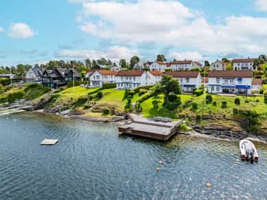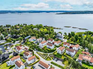 Eneboliger med egne matrikler. Huseierforening for 15 eneboliger, fellesareealer er internveier til garasjene, gangarealer og trapper, utendørs parkering og areal langs sjøen. Ca. 80 m. strandlinje med privat brygge og bøyer for båt.