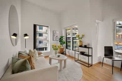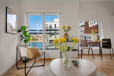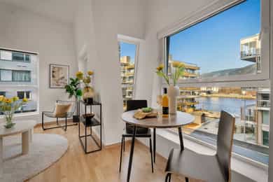 Lekker hjørneleilighet med moderne kvaliteter og sjøutsikt! Heis og felles takterrasse. Like ved BI og sentrumskjernen.
