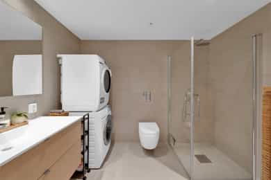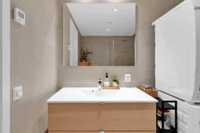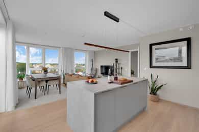 Nordvik Ski og Ås v/Silje Byman har gleden av å presentere Magasinparken 5 - En attraktiv 3-roms selveier hjørneleilighet i 5.etasje. Leiligheten ble ferdigstilt i 2024 og har en gjennomtenkt og funksjonell planløsning bestående av entré, delikat flislagt bad, to gode soverom samt kjøkken og stue i åpen løsning. Fra stuen er det utgang til romslig vestvendt takterrasse på cirka 43 kvm. Kort fortalt: - Romslig garasjeplass m/ lader. - Privat takterrasse med sol hele dagen og kvelden på sommerstid! - HTH-kjøkken med integrerte hvitevarer fra Miele og Electrolux. - Enstavs eikeparkett med vannbåren gulvvarme. - Gangavstand til Follobanen som tar deg til Oslo på kun 11 min. - Pent opparbeidede fellesområder - Bod i kjeller - Felles takterrasse Leiligheten må oppleves - velkommen på visning