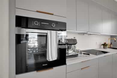 Alle hvitevarene på kjøkkenet medfølger handelen.