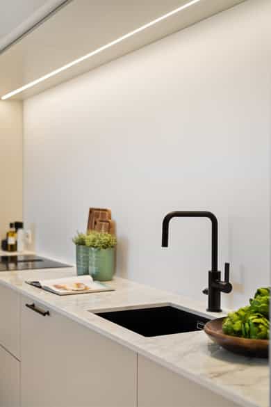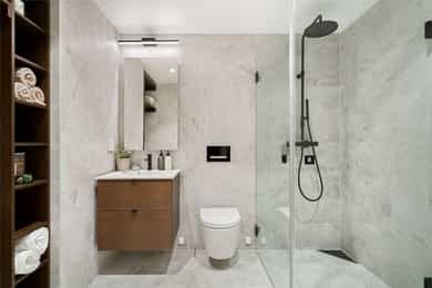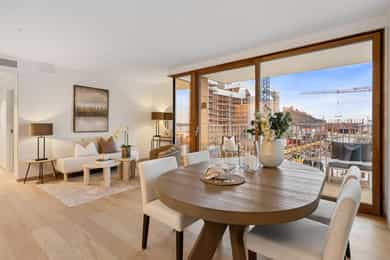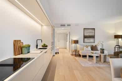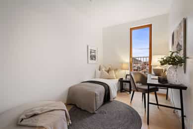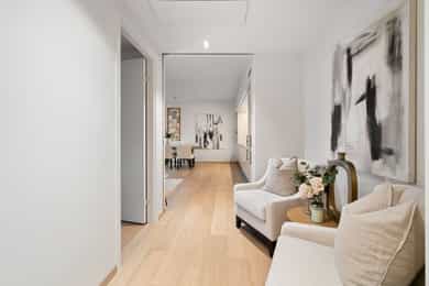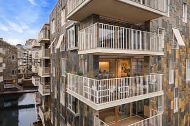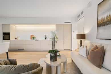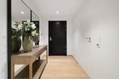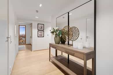 Rostockgata 79 - En helt ny og eksklusiv 3-roms hjørneleilighet med svært ettertraktet beliggenhet, urbant og tilbaketrukket, midt i smørøyet, i et område hvor listen for standard og eksklusivitet er lagt høyt. Dette gjenspeiles i byggets arkitektoniske utforming, fellesområder, inngangsparti og i leiligheten.