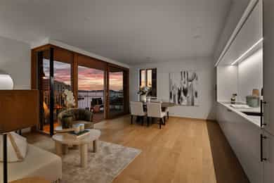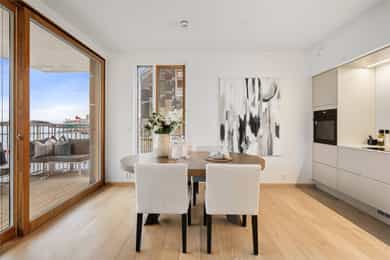Ny og eksklusiv 3-roms hjørneleilighet med svært attraktiv beliggenhet. Solrik balkong. Sjøutsikt. Heis. Garasjeplass*.