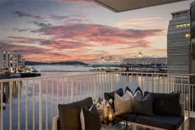 • Sydvestvendt balkong på ca. 13 kvm med flott sjøutsikt
