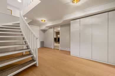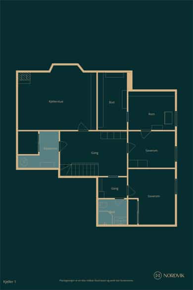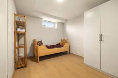 BRA-i: 114 kvm. Trapperom, kjellerstue, 2 soverom (ikke godkjent), teknisk rom, bad og bodrom.