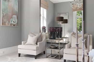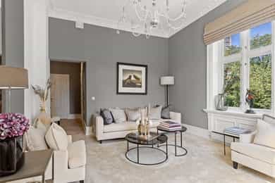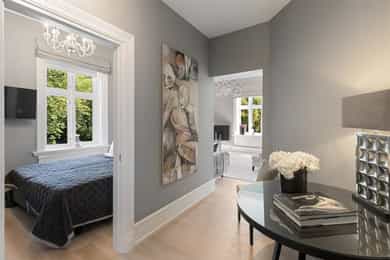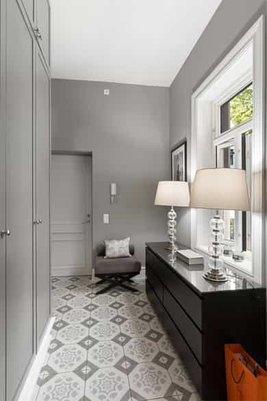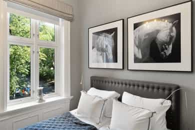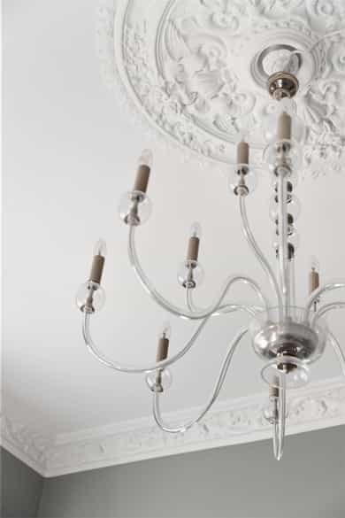• Klassiske detaljer; rosett og stukkatur i stue og soverom