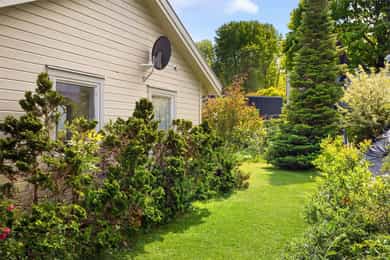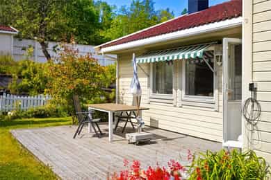 Velholdt enebolig med 3(4) soverom, solrik hage og terrasse – i et populært område nær sjø og Vollen sentrum.