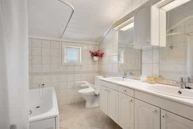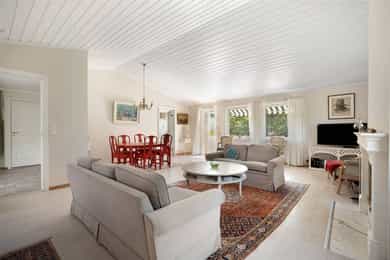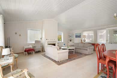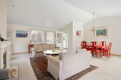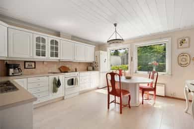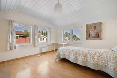 Sjøvollbukta 43 ligger fint til i et svært attraktivt boligområde, med umiddelbar nærhet til sjøen, kyststi og flotte badestrender. Her bor du i rolige og grønne omgivelser med nærhet til skoler, barnehager, Vollen sentrum og off. transport med forbindelse til Oslo. Boligen har praktisk planløsning med 3 soverom (mulighet for 4), 2 bad, stue m/peis og stort kjøkken. Velstelt og solrik hage, samt en skjermet terrasse på ca. 27 kvm. Om man ønsker å ta seg et kveldsbad spaserer man ned til stranden, tar til høyre og går ca. 200 meter ut til flyte/badebrygge som alle kan benytte. Et sjeldent godt bomiljø – perfekt for både barnefamilier og voksne i alle livsfaser. Kort oppsummert: -Svært praktisk -Gode solforhold -Hyggelige omgivelser -Dobbel garasje -Gårdsplass m/biloppstillingsplasser