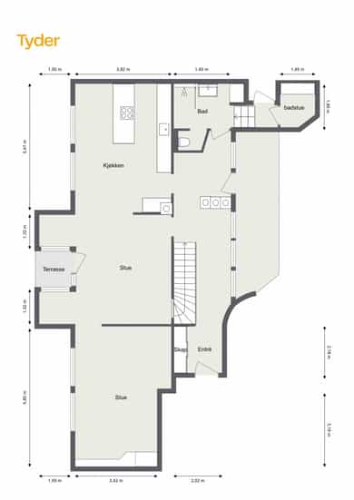 BRA-i: 100 kvm. Entré, kjøkken med spisestue, stue og baderom.