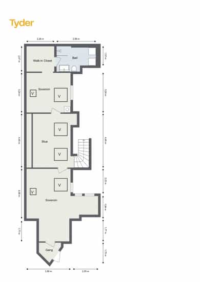 5. etasje - 100 kvm BRA-I: Entré, kjøkken med spisestue, stue og baderom. 6. etasje - 50 kvm BRA-I: Bad, stue, to soverom og gang Boligen disponerer én stk bod med gulvareal målt til 6,3 kvm (areal er ikke måleverdig pga. lav takhøyde). Det disponeres i tillegg én bod målt til 2 kvm på loft. 5.etasje: Entré Velkommen inn! I det du kommer inn døren blir du møtt av en lys og luftig entré med gode muligheter for oppbevaring. Varme i gulv som er belagt med diamantslipt betong. Det er nøkkelfri adkomst til leiligheten med Yale Doorman. Kjøkken med spisestue Leilighetens spisestue med åpen kjøkkenløsning føles som selve midtpunktet i boligen. Romslig løsning med gode vindusflater gir en herlig atmosfære! Kvalitetskjøkken levert av Drømmekjøkken med integrerte hvitevarer fra bla. Siemens og NikolaTesla, samt keramikk benkeplate av typen Beton silk. Her har du rikelig med skap- og benkeplass! Stue Videre inn finner vi TV-stuen. Her er det god plass til sofaseksjoner i naturlig avstand fra TV med tilhørende møblement. I hjørnet er det en effektiv og stilren peisovn som varmer godt og gir en lun atmosfære på kaldere vinterdager. Rommet kan også innredes som soverom. Baderom Eksklusivt baderom (2020) med store 60x60 fliser fra Modena, samt Corian servantinnredning med underhylle fra Copenhagen Bath. Det foreligger dokumentasjon på utførelse av badet. Fra baderommet har du en trapp ned til en herlig infrarød badstue. Dette er prikken over "i"-en som gir deg en luksuriøs spaopplevelse hjemme! Loftsetasje Loftstue Lys og luftig loftstue med store takvinduer og god takhøyde. Pene overflater med enstavs parkett og ellers malte flater i tidsriktige farger. Hovedsoverom med walk-in Romslig hovedsoverom med store takvinduer og godt med naturlig lysinnslipp. Her er det god plass til dobbeltseng og nattbord. Soverommet er tilknyttet flott walk-in garderobe med rikelig oppbevaringsplass. En suite bad Hovedsoverommet er også tilknyttet et delikat en suite baderom (2020) med flislagt gulv med varmekabler, flislagte vegger og malt himling med LED-belysning. Det foreligger dokumentasjon på utførelse av badet. Soverom 2 Leilighetens andre soverom er også av god størrelse. Her er det gode innredningsmuligheter, herlig takhøyde og flotte takvinduer. Det er også rikelig med lagringsplass.